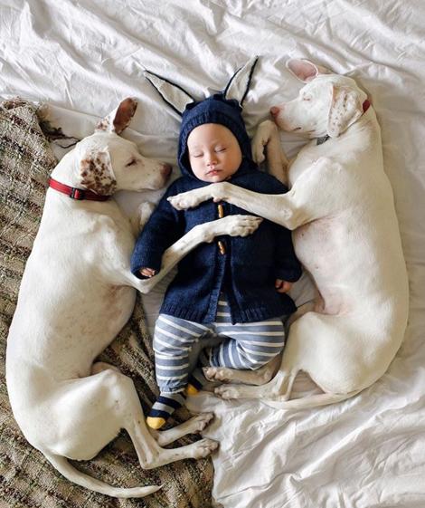 ” Yo acompaño a mi hijo para su siesta en mi cama y luego lo llevo a su habitación o, si veo que está demasiado cómodo para moverlo, lo dejo sobre en mi habitación. Nora está siempre supervisando todo el proceso y se acercará a abrazarlo apenas pueda. Ella es la perrita más paciente y amorosa que jamás haya conocido. Y trata a los niños con amor y absoluta devoción”.