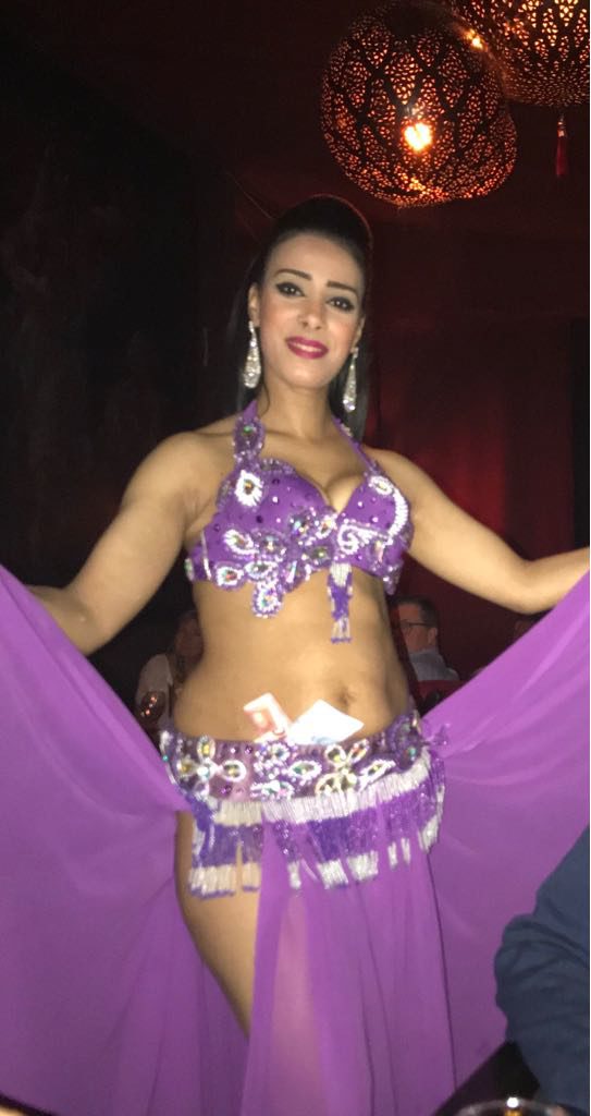 Y no nos podíamos ir, sin visitar un lugar donde pudiéramos ver la danza del vientre. Lo curioso es que yo era la mas entusiasmada. Hicimos la reserva en un famoso lugar llamado “ Palais Jad Mahal.” Al entrar, me impresionó de inmediato un par de señoras que nos recibieron con la mejor de sus sonrisas y sobre su cabeza , una gran bandeja repleta de velas encendidas. Más adentro, la decoración era de película. Un detalle, en todos los restaurantes de Marrakesh que visitamos: está permitido fumar. Verdaderamente un tema . Nos tocó, en más de una oportunidad, comer sumergidos en una nube de humo. Pero en fin. Había que abandonar esa lucha y mejor cambiarse de mesa.