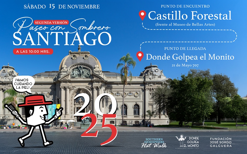 En el caso de Santiago, el encuentro será el sábado 15 de noviembre a partir de las 10:00 horas desde el frontis del Museo de Bellas Artes. La idea esreunir a cientos de personas que, con sus sombreros favoritos, recorran caminando algunos lugares emblemáticos de la capital. La ruta incluye el Parque Forestal, Cerro Santa Lucía, Lastarria y Plaza de Armas, entre otros, finalizando en la tradicional tienda Donde Golpea el Monito, organizadora de este evento.